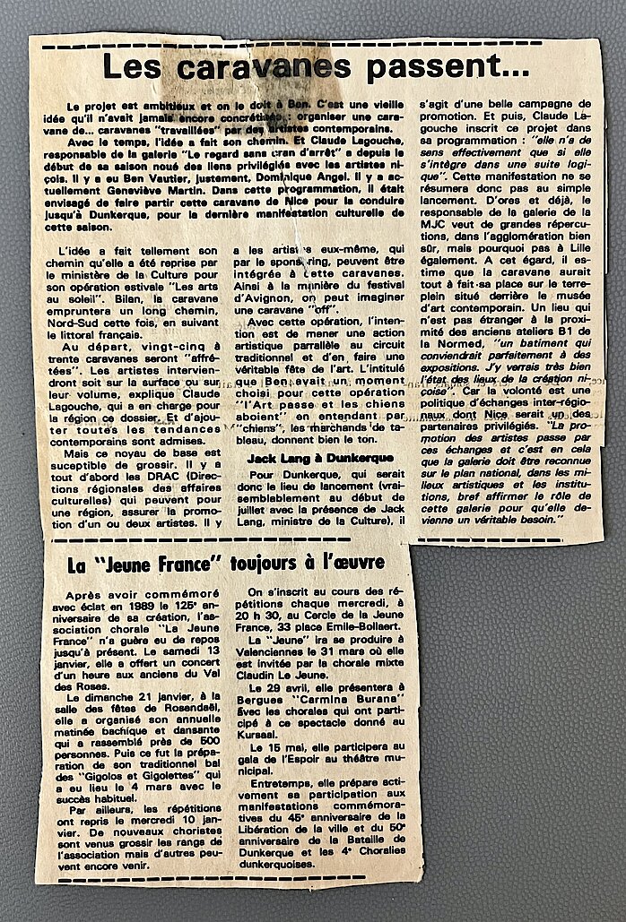 La complicité artistique entretenue par Ben et Claude Lagouche a permis la conduite du projet artistique ‘’La caravane des caravanes’’. Le concept était de faire voyager à travers le monde plusieurs caravanes décorées de thématiques spécifiques et par différents artistes, chacune représentant un aspect différent de l'art et de la culture.