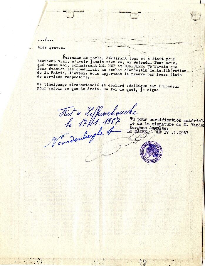 - Attestation dactylographiée de Lucien Duffuler, le 10 janvier 1966, 126Z2